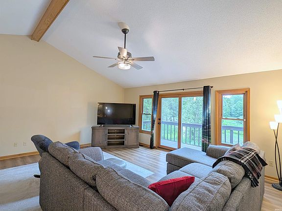 Overlooking Limberlost Golf Course! Welcome to this ranch-style home with stunning views of Hole 15 at Limberlost Golf Course! This unique property offers comfort, space, and flexibility—essentially two homes under one roof. The main level features a spacious master suite with cathedral ceilings, a large walk-in closet, and twin-sink vanity. The open-concept kitchen has oak cabinets, an island, and flows into the vaulted-ceiling living room with patio doors leading to the upper deck. Enjoy your meals or relax in the dining/den area while taking in scenic golf course views. The fully finished walk-out lower level offers in-law or guest quarters with its own full eat-in kitchen, living room with gas log fireplace, 2 bedrooms (1 without a window), 1.5 bathrooms, a second laundry area, and access to a private lower deck—perfect for multi-generational living or hosting extended guests. Recent upgrades include a 50-year roof, updated flooring, Trane furnace & A/C, windows, attic insulation, water heater, interior/exterior/garage doors, and more. Additional features include a 3-car garage, foam gutter guards, Simplx security system with cameras, and all appliances (both sets) including washers and dryers. Don’t miss this rare opportunity to own a spacious, move-in-ready home with incredible views and versatile living options!