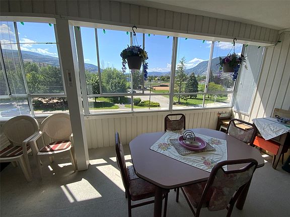 At over 1200 square-feet, this very generous sized two bedroom two bathroom condo in the heart of Penticton is now available. Only a five minute walk to Cherry Ln., Mall and close to all shopping, recreation, and entertainment. This condo boasts a beautiful 260 square-foot enclosed sunroom deck with gorgeous views of the park Mountains and valley with ample amount of natural sunlight. This is a clean and well-maintained top floor unit overlooking lions park. One secured parking and one open parking spot and included as a huge storage 9 1/2 x 11‘ foot storage locker with built in shelving. Plenty of visitor parking. Brand new elevator is being installed. All measurements approximate and to be verified by buyer if important.