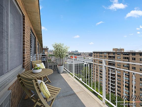 The layout easily accommodates both a dining area and a home office. Hardwood and tile flooring runs throughout the apartment. Ample closet and storage space further enhances the functionality of the unit. The apartment boasts a massive bedroom and a renovated bathroom. The open-concept kitchen is equipped with new appliances, including a dishwasher. Step out from the living area onto a serene private outdoor space, perfect for relaxation or entertaining guest overlooking your panoramic view of Midtown and Long Island City.