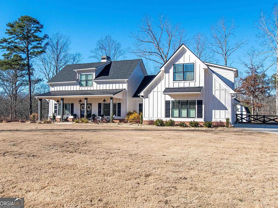 This Home just got sweeter! Better than new with all the upgrades done Plantation Shutters throughout, Sprinkler System, Fenced yard, Outdoor storage Barn, extended patio and built in Sono's sound system in great room, dining room, kitchen and outdoors covered lanai. Must see Ranch Plan on 2.57 Acres! Over 3600 sq ft of perfection only 2 years New, 5 bedroom 3.5 full bath! As you enter this beauty you are greeted by a large 2 story foyer, open formal dining room, large great room with brick fireplace, chefs kitchen large island with yes, large walk-in pantry. All stainless steel appliances granite counter tops and ceramic backsplash. Split bedroom plan, on one side you have 3 bedrooms 1 full bath. On the other side of home you will find primary bedroom, primary bath with soaking tub and separate shower, generous size custom primary closet with direct access to large Laundry room. Upstairs over the 3 car garage is a very large bedroom-suite, private full bath and walk in closet. Enjoy the outdoor living with large covered lanai including fireplace and Tv hook up. Location is ideal just minutes to all your shopping needs, movies and if you commute easy access to I-85, call for a Tour or visit our Open House February 3rd from 3pm - 5pm!