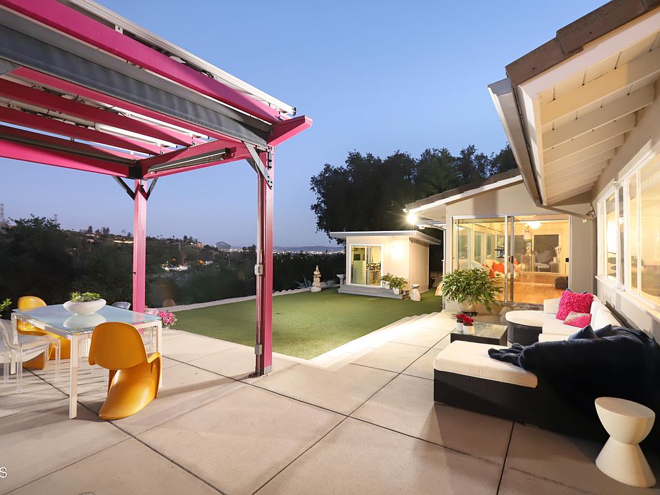 This absolutely stunning mid-century modern view home that was professionally designed with sustainability, good health and energy efficiencies in mind, was on the 2008 Annual ASID Home & Kitchen Tour and is the winner of the ASID Golden Key Award. Every beautiful detail from the drought tolerant landscaping to the graffiti mural wall, magenta colored pergola with solar panels and the 50's bathroom wallpaper and tile make the whole experience of this home exceptionally unique and timeless. The custom art glass front door in the Starburst design greets you with a sense of anticipation of what is yet to come. Upon entering you will be awestruck by the simplicity of the walls of glass that showcase the canyon views and the seamless transitions in the living areas that create a great sense of flow and warmth. Custom formaldehyde-free cabinetry made of Sapele wood is the highlight of the perfectly designed sleek eat-in kitchen with Miele appliances and recycled Quartz countertops. The Sapele cabinets continue into the separate laundry room with side by side Miele washer and dryer. Conveniently located off of the laundry room is an office that is nicely separated from the rest of the home for those needing some quiet. The most transformative part of this incredible home is the infinity edge backyard that is the perfect peaceful yet fun outdoor oasis with canyon and city views and separate studio with split HVAC. And, the graffiti mural wall and magenta pergola are perfectly juxtaposed with the serenity of the canyon and drought tolerant landscaping. This home is not only a beauty on the outside but has been lovingly restored and renovated with Green Design Elements that include Water Hogs for collecting rainwater, solar panels, attic insulation made with non-toxic denim, dual flush toilets, plastic lined crawl space and whole house water filtration system. You don't want to miss this one!