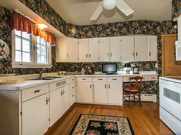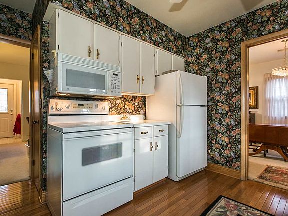 Charming two bedroom home featuring some hardwood flooring. Formal living and dining rooms. Three seasons porch. Lots of windows make this a bright home. Two large bedrooms. The living room features a fireplace. Very nice yard with mature trees.