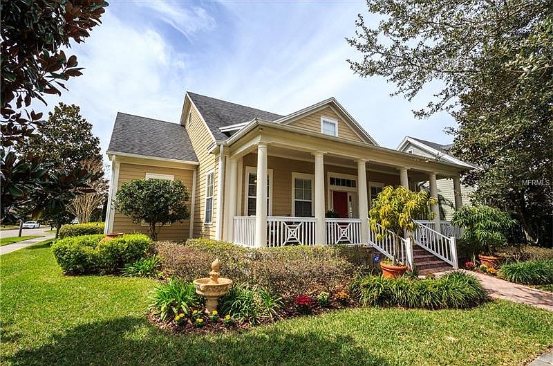 This beautiful Baldwin Park home situated on a corner lot boasts the popular David Weekly Homes "Brames" model. The open floor plan has beautiful slate flooring throughout and is perfect for the busy family and entertaining. Kitchen features upgraded cabinets, double oven, and large center island. Kitchen opens to the family room complete with fireplace and built-ins. Master suite features tray ceiling with sitting area, spacious Jacuzzi bath, double vanity, large walk-in closet with custom built-ins. the spacious garage retreat offers a full bath and closet. Large back brick porch connects to two car garage. Walking distance to a community pool and parks, elementary and middle school, and Baldwin Park shopping.