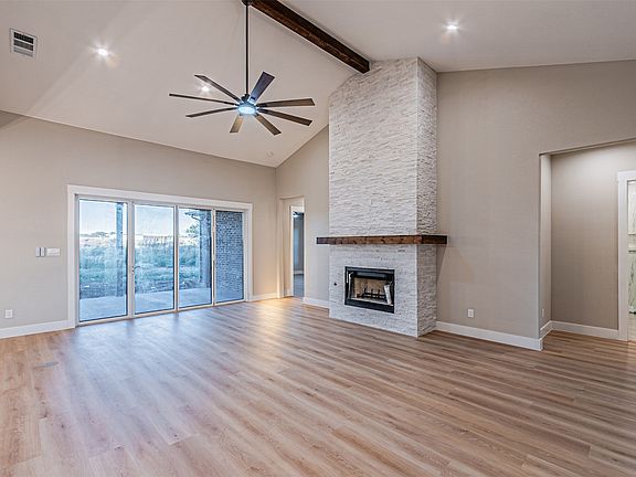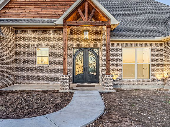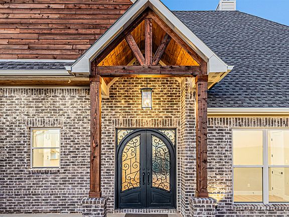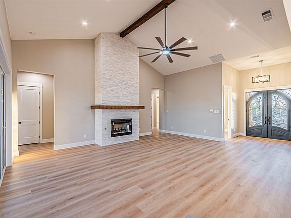 Your DREAM home awaits! This stunning custom full brick home sits on a 2-acre lot with a private pond in the back. Tons of custom features you won't see everyday. Upon opening the full-size iron door, you will be welcomed with large living room that features soaring vaulted ceilings, a stunning floor-to-ceiling stone fireplace, and 12 ft full openable folding doors leading to covered back porch. The open-concept layout seamlessly connects the gourmet kitchen completed with full height cabinetry, high-end appliances, quartz countertops with matching quartz backsplash, and oversized island seating, making it the perfect space for entertaining or relaxing with family. Additional flex room is connected with 2 guest rooms, can be used as a second living, kids game room or addition dinning room. Also featuring spray foam insulation including fully insulated large garage and insulated garage door.