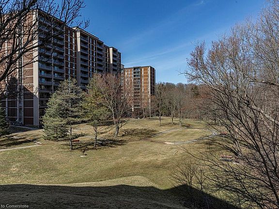 Enjoy stunning west-facing views of greenspace in this well maintained 2 bedroom condo. Offering 826 sq ft of light filled space. This apartment is a perfect fit for downsizers, first-time home buyers, or anyone wanting to be close to it all. The galley kitchen is fully equipped with stainless steel appliances: fridge, stove, and dishwasher. You'll love the spacious living room and separate dining room. The two bedrooms offer great storage and large windows. Condo fees cover heat, hydro, water, building insurance, and common maintenance, ensuring worry-free living. Just minutes way from McMaster, Downtown Dundas, Ancaster, and nearby amenities. Bus route accessible and minutes to the GO line and hwys.
