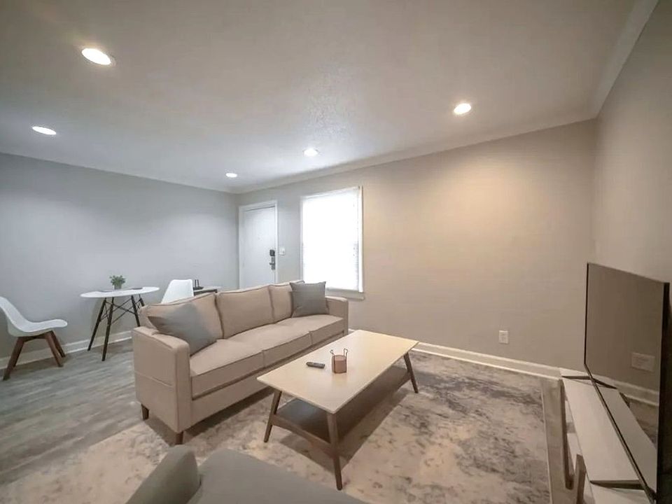 Fully Renovated Modern Design apartment features: Kitchen with granite counters, tile backsplash, soft touch cabinets and stainless steel appliances (including built-in microwave). This apartment has luxury vinyl plank throughout, sunny windows and recessed lighting in its spacious living area and large bedrooms. Washer/dryer is also provided. Water is included (savings of approx. $70/mo). The apartment is very quiet no close neighbors to the right or left of the building. Only minutes to downtown Raleigh, Wake Med, restaurants and shopping!