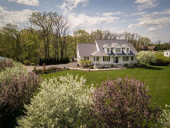 This stunning home has a long list of luxuries! Minutes to 376 & I 80. Only 1 hour to Pgh or Cleveland! Lg. foyer with open concept, Beautiful oak staircase & Doors, upper level catwalk overlook the LR. Upper level has 3-4 BR. 4th BR could be play room or entertainment room. Walk in-closets in these bedrooms are larger then you have ever seen. (13x6 & 13x14). Main level boosts wooden cathedral ceiling in LR with Floor to Ceiling Stone FP, Large Eat in Kitchen overlooking the back yard filled with wild life! Main Flr master BR with ensuite, Jacuzzi Tub, 5x5 tiled walk in shower & 10x10 walk in closet! Lower Level i 30x41 with a wet bar and walk out to patio (14x30), surround sound & also includes 2 Bonus Rooms, full bath & safe room. 2 high efficiny furnces, 80 gal water tank, 200 amp electric box with subpanel for det/grg, power saver for power spikes,12x24 deck off main level, 2 Car Int/Grg with Stone Flooring, Newly built detached garage for tractor, quads, etc.