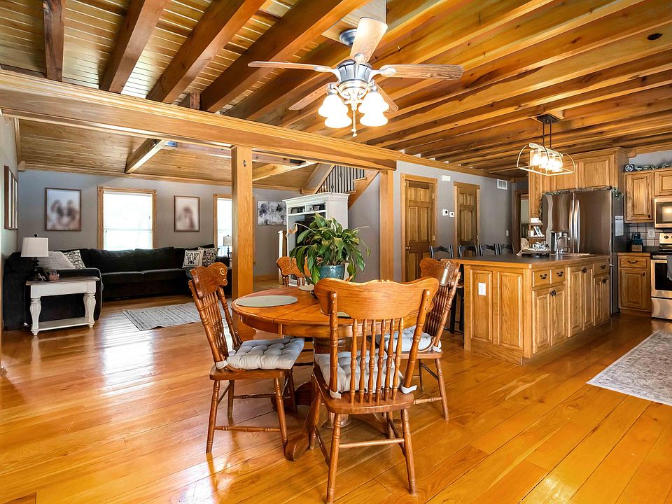 Custom-Built Home on 2.7 Acres with In-Ground Pool, 2 car Attached Garage, and a Creek! This stunning custom-built home offers a perfect blend of charm and functionality in a peaceful country setting. Featuring custom wood floors & ceilings, this home's unique craftsmanship is sure to impress.The main floor includes a spacious living room, a kitchen with a large island & bar sink, ample pantry space, a primary suite with a whirlpool tub & walk-in closet, an additional full bath, a utility room, and a flexible dining area and home office space. Upstairs, offers beautiful views of the main floor and enjoy a loft-style home office, two bedrooms, a full bath, and a bonus room. The spacious full finished basement features two bedrooms, a full bath, and a large family room, kitchenette, & large storage room. Step outside to enjoy the covered back patio leading to the in-ground pool, large barn, large carport thats perfect for boat/camper storage and on the covered front porch, the serene creek on your property. A rare find—don't miss out! 1 yr home warranty at closing with full price offer. Schedule your showing today!