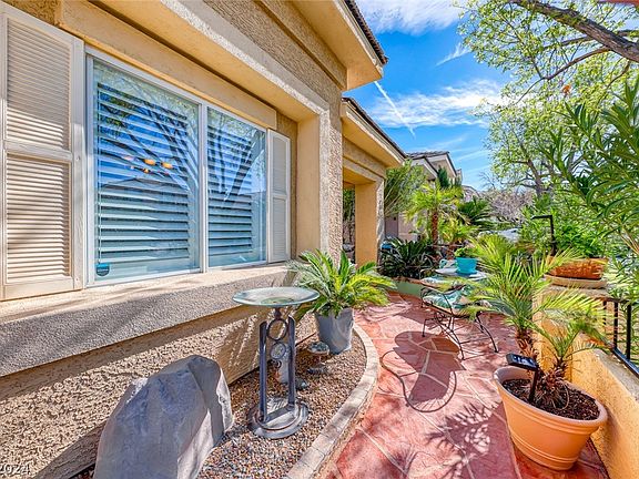 Welcome to a slice of paradise in Green Valley Ranch. Charming Laguna Beach feel Single Story located in lush Green Valley. Private Gated Courtyard entry with flagstone. Plantation Shutters, Fireplace, 10 foot ceilings. Leathered granite counter tops in the kitchen. Enjoy the tranquil Private Backyard with covered patio and with no neighbor behind. Ask about the low property taxes! HVAC replaced in 2017. Green Valley is the Emerald in the Desert with more than 200 acres of community amenities like parks, schools, recreational centers, open space areas, pedestrian and bike paths. Close to Whole Foods Shopping Center, 215 beltway, Green Valley Ranch Resort and the District Shopping and Restaurants.