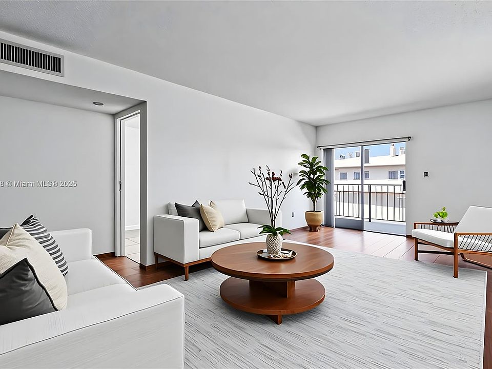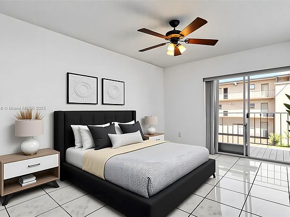 Spacious and freshly painted 1-bedroom, 1-bath condo featuring a good-size kitchen with dining area, tile floors throughout, and in-unit washer and dryer. The primary bedroom includes a walk-in closet and sliding glass doors leading to the balcony. New A/C installed in 2022. Unit comes with one assigned covered parking space. Community amenities include a pool and new elevators. Excellent location within walking distance to Westland Mall, shops, and restaurants.