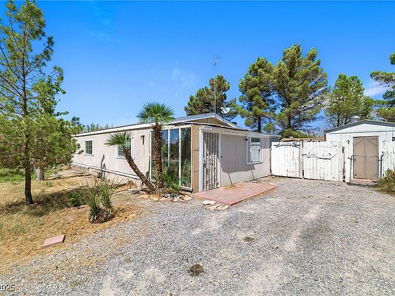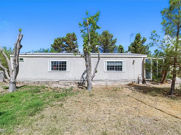 Awesome, ranch style property in beautiful Pahrump! This manufactured home converted to real property on one acre features 2 bedrooms, 2 bathrooms, new flooring and carpet and interior paint. Additionally, there is a total of three sheds, one of them is fully drywalled has electricity and a swamp cooler installed to use as you wish. Plenty of parking space everywhere just follow the path through the back and around. Need RV parking with hookups? there are two readily available. Owners had a mini farm going at one time with pigs, chickens, ducks etc. There are many fruit trees already planted and tons of space for more. Check out the bamboo trees that create a wind barrier and also give a sense of privacy. Come see for yourself, you will love this property. See you there!!