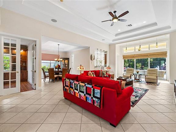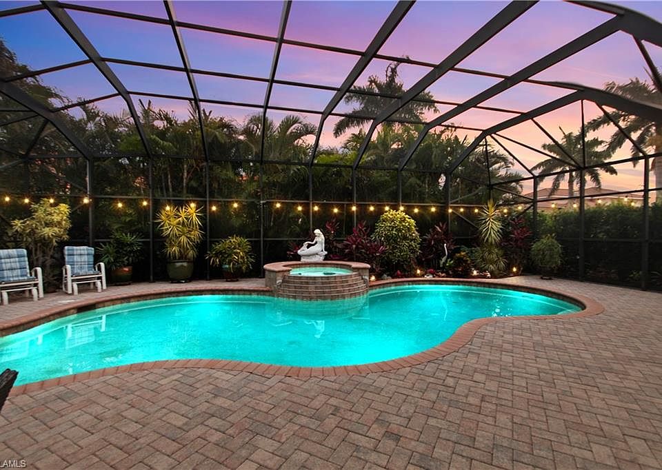 Refined Elegance in Belle Lago – 19500 Caladesi Dr., Estero, FL Tucked away on a private corner lot within the sought-after community of Belle Lago, this beautifully maintained Saranac model offers a blend of timeless style and modern comfort. With 3 spacious bedrooms + den, 2.5 bathrooms, and over 2,500 sq. ft. of living space, this residence is thoughtfully designed for both everyday living and upscale entertaining. The property is hurricane ready with impact-resistant windows and doors and entertainment ready with a custom wet bar. From the moment you enter, you'll appreciate the recently painted neutral tones that create a welcoming and sophisticated atmosphere. Tile flooring flows seamlessly through the main living areas, while engineered wood floors add warmth to the primary suite and dedicated home office, which features a custom built-in workstation perfect for remote work or creative pursuits. The gourmet kitchen showcases granite countertops, wood cabinetry, and a layout that opens to the living space, ideal for casual gatherings or formal dining. Step outside to your own private oasis—a screened lanai with roll-down hurricane screens, overlooking a sparkling pool and spa, surrounded by lush tropical landscaping. Belle Lago is a premier gated community in Estero offering a rich lifestyle with resort-style amenities including a clubhouse, resort pool, fitness center, tennis, pickleball, and walking trails. Residents also enjoy optional membership opportunities at the adjacent Estero Country Club at The Vines, with access to championship golf, fine dining, and additional social events—just a short golf cart ride away. Conveniently located between Naples and Fort Myers, Belle Lago provides easy access to Coconut Point Mall, Miromar Outlets, Gulf Coast Town Center, RSW Airport, and a host of upscale dining, shopping, and entertainment options. Don’t miss the opportunity to own this exceptional home in one of Estero’s most desirable communities.