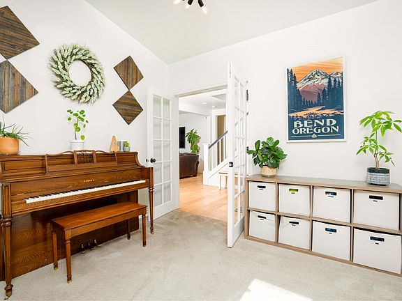 Tucked in the serene River Rim neighborhood, this beautifully remodeled home offers both privacy and modern appeal. A thoughtfully designed layout creates a sense of spaciousness, while expansive outdoor areas, perfect for relaxation and entertaining, extend your living space. Inside, two luxurious primary suites—one on the main level and another upstairs—complement additional bedrooms, baths, a private office, and a large garage. Bordered by mature landscaping and adjacent to Wildflower Park, the setting is both open and secluded. Enjoy morning coffee on the upstairs balcony, host gatherings on the covered patio by the lava rock fireplace, or unwind in the peaceful surroundings. Recent renovations include a full kitchen and laundry remodel, new flooring, modern fixtures, fresh paint, updated appliances, and more, enhancing the home's appeal. Minutes from downtown Bend, the Old Mill District, and walkable to river trails—welcome to refined living in an idyllic setting.