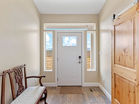 Private 11+ acres with breathtaking mountain views. This 4,181 sq ft home offers 3 bedrooms and 3 bathrooms, including a spacious primary suite with a tray ceiling, his and hers walk-in closets, and a luxurious bathroom with a separate shower and soaking tub. The large, open kitchen features granite countertops and a walk-in pantry. Both the main floors and basement boast 9-ft ceilings; the basement is framed for two additional bedrooms, a full bath, and a generous family room, with extra storage and a secure safe room. An oversized attached 3-car garage provides ample parking and workspace. Full RV hookups are available on the cement pad adjacent to the house. Above the garage, a 500 sq ft ADU offers guest or rental space, complete with a balcony that provides a relaxing atmosphere. The horse-friendly property features pasture ground, ideal for equestrian pursuits. You will enjoy the covered back patio or front porch, both offering sweeping views. This property combines spacious comfort, rural tranquility, and endless potential for outdoor living and growth.