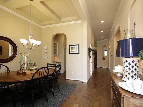 Gorgeous one-story Ryland home built in 2014, move-in ready! Open floor plan, 12-foot ceilings, hardwood floors throughout, crown molding, gas fireplace, trayed ceilings and neutral tones. Large island kitchen with granite countertops with breakfast bar and stainless steel appliances, which flows into a huge family room. Trayed ceilings in Master bedroom lead to an en-suite with soaking tub, dual vanities and separate shower. French doors lead to study. Formal dining room and butlers pantry which gives this home an easy flow. Extended laundry with lingerie sink, added pantry storage and a 2-car garage. Energy efficient features such as a tankless water heater, double-pane windows & decked attic. Back patio has fabulous views and plenty of backyard for the children and pets to play in.