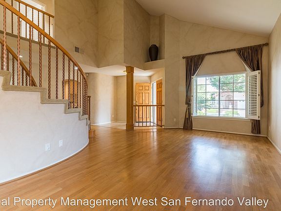 Lovely 4 BD/ 2.5 BA House in Private Community - Nicely kept 4 bedroom, 2.5 bathroom house located in lovely private community in city of Porter Ranch! Manicured front lawn and stone laid driveway lead to solid wood doors. A spiral staircase greets you upon your entrance. Separate family and dining rooms allow for plenty of entertaining. Open kitchen with modern amenities. Cozy living room with fireplace. There is a large master bedroom and en suite bathroom.Plus large bonus room (recreational room) (RLNE2414286)
