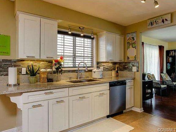 Adorable one story home with 3 bedroom 2 baths and an INCREDIBLE VIEW OF THE CITY. Very pretty front yard and entry with newer sod, paint and lovely double door entry. Inside features an open floor plan with custom tile and wood like laminate floors throughout. Also FEATURES beautiful window treatments, bright, colorful paint colors, ceiling fans, custom baseboards, central heat and air and updated lighting throughout. Kitchen has been remodeled with beautiful granite countertops and mosaic tile backsplash, custom shaker style cabinets with under cabinet lighting, fixtures, hardware and beautiful STAINLESS double sink and APPLIANCE.. Master bath has newer tiled shower and flooring. Hall bath features updated dark wood cabinet and mosaic backsplash. Private yard with covered patio and lots of grass and lush hillside. Large side yard with great storage shed and garden boxes. Really a nice property!