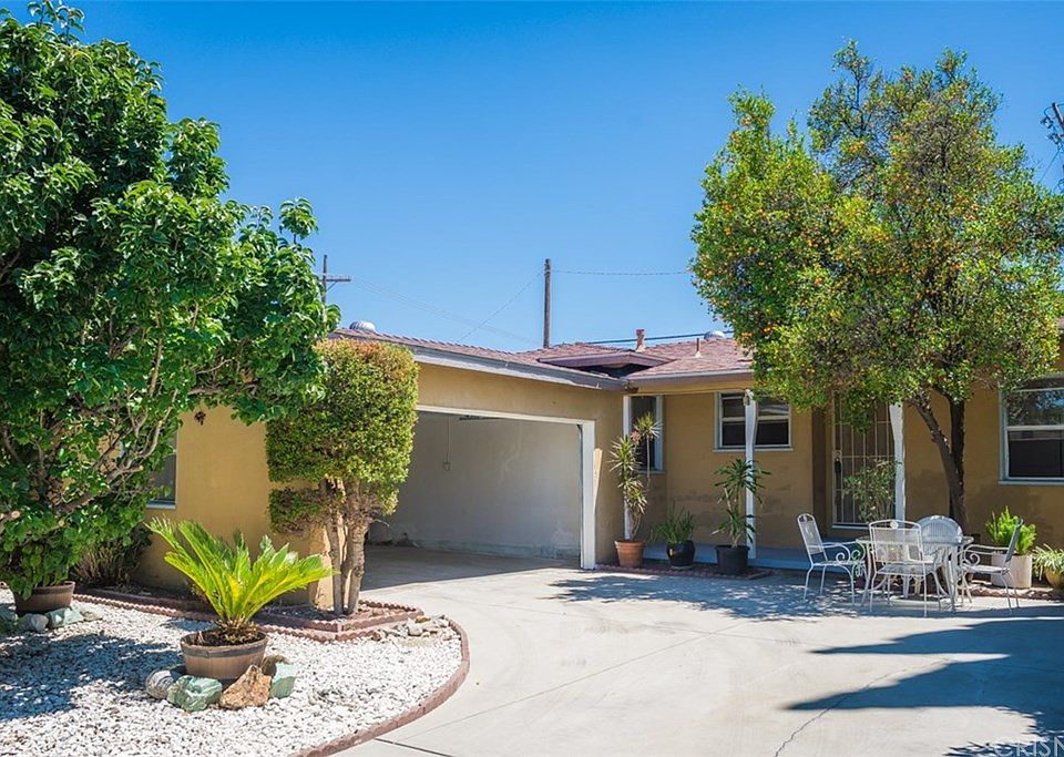 Located in a good residential neighborhood. This gated home, features 3 BR, 1.50 BA , formal dining, 2 fireplaces, and family room in an enclosed patio perfect for entertainment, has evaporative cooler, freshly painted, original hardwood floors, lots of fruit trees you will enjoy throughout the year. Front room not included in the square footage. Good size front yard with room for extra parking. Property is located near malls, freeways, schools.