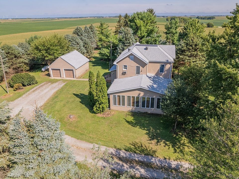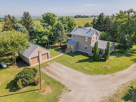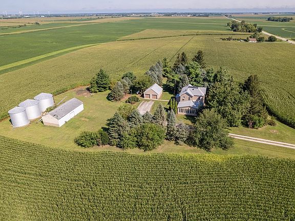 A great opportunity to own a country property with 5 acres close to town! This house was gutted down to the studs & re-wired in 1984 (w/exception of main floor paneled room). Some more recent updates include: New Roof house & garage (18), Commercial size HVAC (17), Commercial water heater (18). Windows were replaced with Andersen windows. Most of house has just been freshly painted (Aug '24), including some ceilings. Brand new carpet in bedrooms (Aug '24). Two small decks on W side of house were just painted, along with W side of house. New mirrors in bathrooms. Water softener stays with house, along with a Reverse-osmosis filtration system. Seller says that the well is really nice with good depth. A few items are being sold in As-Is condition: 3 grain bins, machine shed, septic system (no known issues), whole-house fan, & garage windows. This beautiful property is waiting for its new owner!