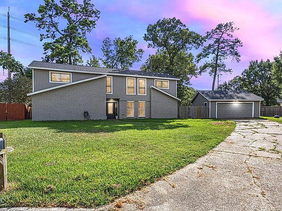Recently updated 4 bedroom 2.5 bath home located minutes from Lake Houston. Recent updating includes kitchen, primary bathroom, secondary bathroom, interior painting, laminate flooring, tile work, and so much more! Has an oversized 1st floor primary bedroom, with 2 separate vanity areas and 2 water closets, plus an oversized shower area and multiple closet areas. All 3 secondary bedrooms plus a guest bathroom are located on the 2nd floor. Living room has soaring ceilings and large enough for large oversized cozy furniture. Home sits on an oversized cul-de-sac lot, with a massive backyard! Detached 2 car garage and an extended driveway allow for plenty of parking options. Don't forget to check out the 3D tour.