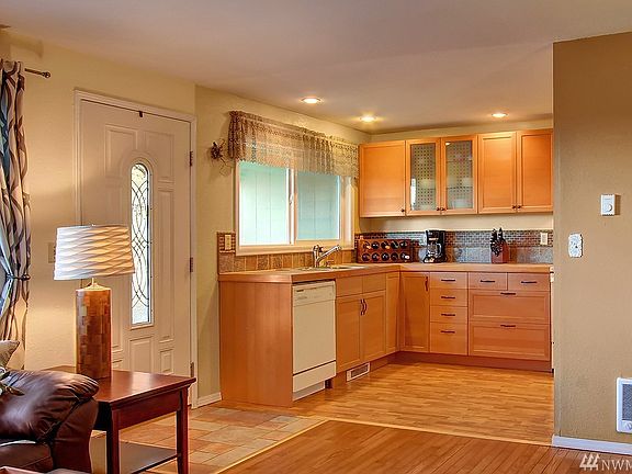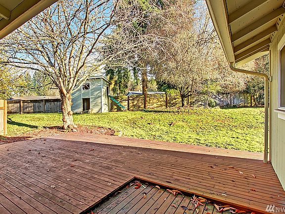 Enjoy this charming & updated rambler on a large cul-de-sac lot in the Northshore school district. Cute covered front porch overlooks large front yard. Hardwoods throughout main living areas. Family/dining room off kitchen has fireplace & French doors to deck. Updated kitchen w/eating area has newer cabinets, double sink & tile back splash. Main bath has newer vanity & tile floor. Newer roof (2012) & hot water heater (approx 1 year old). All appliances including refer, washer & dryer included.