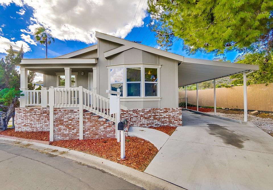 Spacious Newer Upgraded Skyline Home located on a corner lot. Recently remodeled w/huge living room & kitchen. Large master bedroom w/walk in closet. Move in ready w/new carpet, paint and central AC. Laundry room has storage and space for side by side washer/dyer. Quiet and private location with large shed and backyard. The community in it's own private valley and is centrally located within San Diego. Central heated pool, clubhouse and walking trials with this 55 and up community. Space rent is $893 per month.