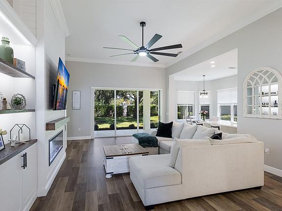 STUNNING MODEL PERFECT THREE BEDROOM TWO BATHROOM HOME IN THE HIGHLY SOUGHT AFTER COMMUNITY OF WISTERIA PARK IN NORHTWEST BRADENTON!!! Every detail has been thoughtfully updated to create a space that feels brand new and move-in ready. Renovated between 2023–2025, this home showcases new luxury vinyl plank flooring, fresh baseboards, modern plumbing fixtures, stylish light fixtures, and ceiling fans throughout. The heart of the home is the NEWLY RENOVATED KITCHEN with sleek white cabinetry, quartz counters, stainless steel appliances, a gas range, new pantry shelving and door, and an oversized island perfect for gathering with family and friends. The open living room features custom built-in cabinets, floating shelves, and an elegant electric fireplace, all accented by new blinds and plantation shutters for a crisp, polished look.The spacious owner’s suite offers a true retreat with a walk-in closet and a spa-inspired bath that includes dual sinks, a relaxing garden tub, and a separate walk-in shower. The guest bedrooms are equally inviting, one featuring custom built-ins and a cozy window seat. Additional conveniences include a laundry room with storage and utility sink, epoxy-coated garage floor with abundant storage space, and a paver driveway leading to the two-car garage. Outdoor living shines with a screened lanai boasting a brand-new panoramic clear-view enclosure—designed with no railing obstructions for wide-open backyard views—paired with new outdoor lighting to create the perfect setting for relaxing evenings or entertaining guests. There’s ample room to add a private pool, and as a resident of Wisteria Park, you’ll also enjoy access to the sparkling community pool. With its tile roof, new front door, and fresh interior paint, this home radiates curb appeal and peace of mind. Best of all, this home truly feels like a model home—meticulously maintained, beautifully upgraded, and ready for you to move right in. Located just minutes from Robinson Preserve, De Soto National Memorial, Gulf beaches on Anna Maria Island, shopping, dining, and top-rated schools, it offers not only an incredible home but also the perfect Florida lifestyle.