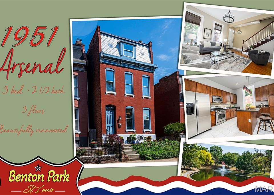 Price Improved-Bring your buyers! Step inside this Rare Opportunity to own a Beautifully Preserved Historic home where timeless charm meets modern luxury! Spanning 2,700 sq ft across 3 dramatic stories, this Benton Park treasure delivers 3 bedrooms, 2.5 baths, & multiple living areas on every level—plenty of room for everyone to spread out & enjoy!