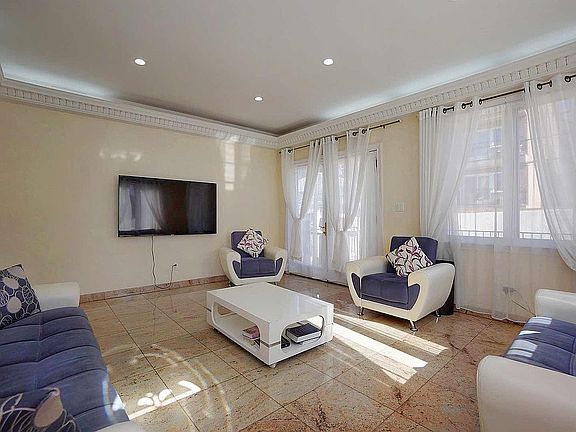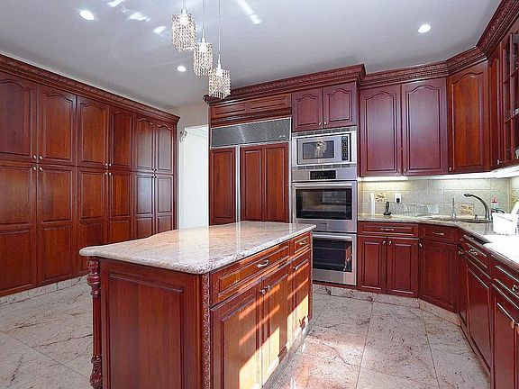 Open concept living room / dining room offers lots of room to entertain. Large Kosher eat-in kitchen boasts granite counter tops, large center island, Sub-Zero refrigerator, Bosch double oven and double sinks.