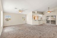 - Ceiling Fan(s), Dining Area, Primary Suite, Open Floorplan, Tile Countertop, Tile Counters, Vaulted Ceiling(s), Window Treatments