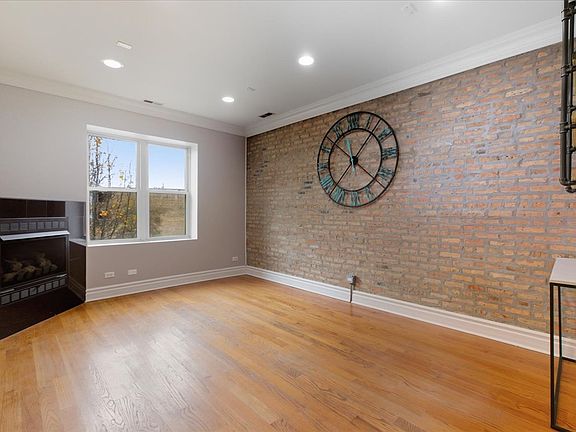 Renovated 2BD/1BA Logan Square condo with a warm, inviting feel and excellent natural light throughout. The living room and primary bedroom face west, offering bright afternoon sun. The living room features exposed brick and a cozy gas fireplace, creating the perfect space to relax or entertain. The updated kitchen includes stainless steel appliances (including a microwave and dishwasher), a double sink with garbage disposal, granite countertops, and abundant cabinet storage. The primary bedroom comfortably fits a king-size bed with nightstands and includes a built-in closet organizer. The second bedroom works well as an office but can accommodate a queen bed if needed. The bathroom features an updated sink, modern tile work, and extra storage above the toilet. A private deck off the kitchen provides room for a table and chairs, ideal for morning coffee or evening unwinding. Additional features include central heat and A/C with a Nest thermostat and in-unit laundry.