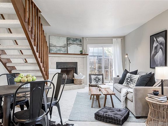 Bright and ideally located, 2 bed, 1 bath end unit. Mature trees frame the exterior. Cozy living room with a fireplace open to a bright kitchen with stylish gray cabinets, open shelving and a 2-seat breakfast bar. Staircase leads to second-floor bedrooms capped by vaulted ceilings. Ample natural light, generous closet space and recessed lighting envelop each room in serenity and convenience. Storage capabilities are amplified with an above-closet nook in each bedroom -- perfect for seasonal décor and wardrobes. The shared bathroom has naturally inspired finishes and sleek hardware.