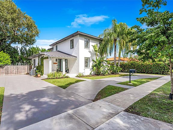 Discover this beautifully renovated classic 2-story home in desirable Silver Bluff. This spacious 4BD +office/gym residence sits on a quiet, tree-lined street & features a great layout w/ living & family rooms, hardwood floors & abundant natural light. Large primary suite w/ multiple closets. Renovated bathrooms. Stunning kitchen featuring a huge island, sleek modern finishes & a seamless flow to the dining & backyard, perfect for entertaining or relaxing. Outside, your private oasis awaits. Enjoy a heated salt-water pool, lush landscaping, Sonos sound system & basketball court. Additional highlights include impact windows, metal roof, circular driveway & a dedicated laundry/utility room. Enjoy the best of city living w/ a neighborhood feel, just minutes from the Grove, Gables & Brickell.