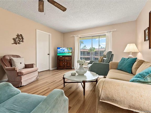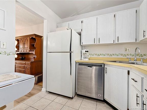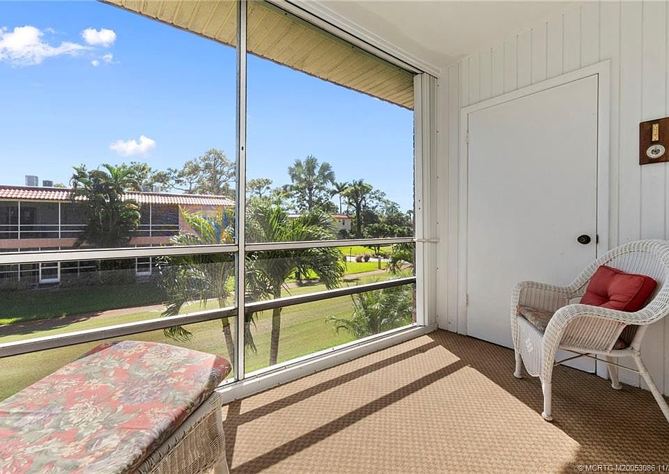Your Florida retreаt аwаits! Juѕt minutеs to downtown Stuart, thiѕ chаrming 2 BR/2 Bath condo with gorgeous golf course views is perfect for your seasonal getaway or year-round retreat. Located just across from the pool and clubhouse, this unit has one of the best locations in the community. You'll enjoy watching the golfers just getting started on the first tee while you sip your morning coffee or afternoon cocktail. Beautifull laminate flooring in living areas, plush carpet in bedrooms. Bathrooms have been nicely renovated. Community roof replaced in 2024. HOA fees were just lowered to $802/mo. MYCC fees include water/hot water, cable/internet, sewer, trash removal, and tons of amenities to keep you active year-round. Enjoy unlimited golf on the Dye Family designed 9-hole executive course, billiards, poker, 2 fishing docks, car wash area, fitness center, bocce, community pool, water aerobics, yoga, painting classes, and more! See Broker's remarks and supplements for more info.