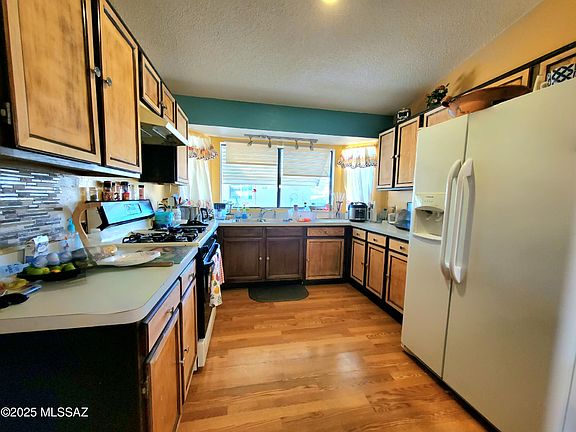 Welcome to a beautifully maintained home featuring a rare layout where each bedroom has its own private bathroom. This inviting residence offers an open-concept living area, a spacious kitchen, a large laundry room, and a two-car garage for added convenience. Outside, you'll find a nice-sized shed equipped with its own A/C wall unit, perfect for use as a workshop, hobby space, or extra storage. The leased solar panels help keep utility costs low with affordable monthly payments, making this home both energy-efficient and budget-friendly. Ideally located just minutes from the Tucson Spectrum Mall, you'll enjoy easy access to shopping, restaurants, and entertainment--combining modern comfort, convenience, and an unbeatable location.