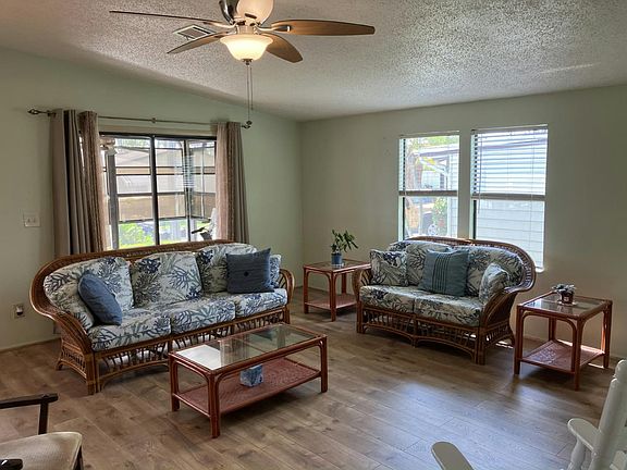 Charming 1987 2 bed, 2 bath Fleetwood home with 1,008 sq. ft. of comfortable living space. Enjoy a front-facing lanai, enclosed carport, and a private perimeter lot. Upgrades include a newer roof (2018), A/C (2019), vinyl plank flooring (2020), new appliances, and upgraded piping and vapor barrier is in good condition. Move-in ready and well-maintained! Come and enjoy resort style living in Tara Woods!. Washer/dryer 2025
