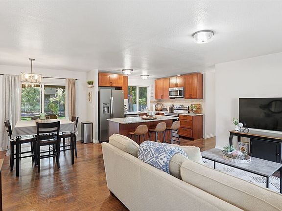 The home you have been waiting for has finally hit the market! Enter property through the quaint white picket fence and head inside to see all this open floorplan has to offer. Slab granite kitchen with breakfast bar and stainless appliance package. Living room + spacious family room. Updated bathroom with new vanity has full tile shower surround. You can exit through the sliding glass doors from the dining nook or family room to access the large fully-fenced back yard with recently installed entertainment sized patio that has covered + uncovered space for year-round enjoyment. This surprisingly secluded yard space is complete with firepit & shed is buffered with green space on 2 sides. In-home laundry. All appliances are included.