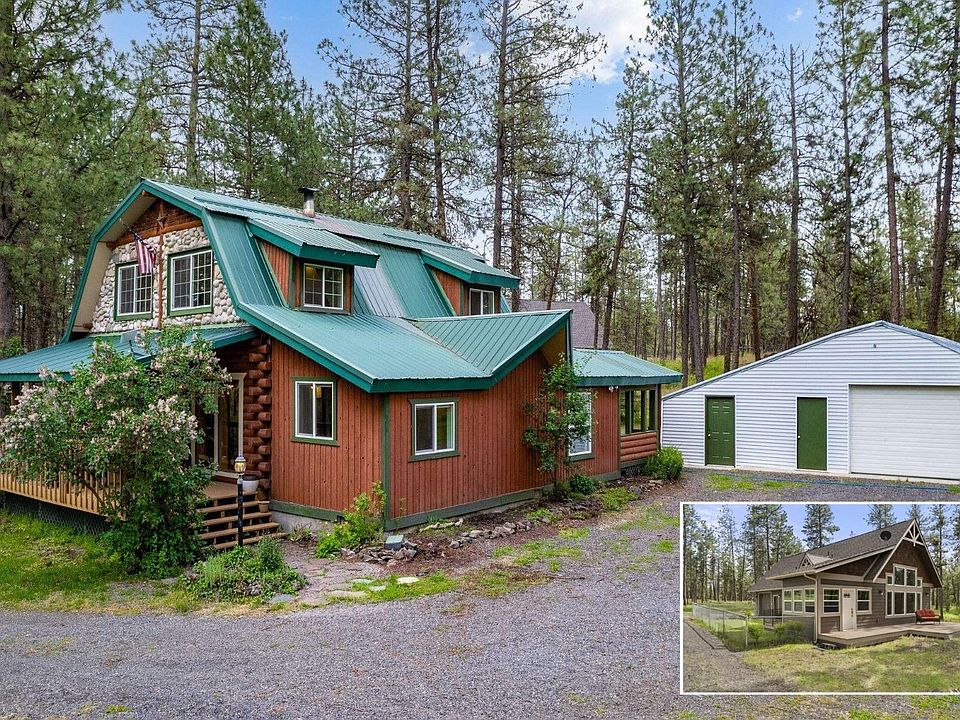 Welcome to this stunning property on 10 tree-filled acres, featuring not one, but two charming homes! The main residence is a beautiful 2212 square-foot log-sided home with a cozy feel. On the main floor, you'll find a bedroom and 3/4 bath, while the second level has three bedrooms and a full bath. Exposed beams and wood floors add character, with propane stove in the kitchen and a wood-burning stove in the living room. Step outside to the covered front porch to take in the seasonal pond and scenic views. Additionally, there's a one-bedroom, one-bath 920 square-foot ADU, built in 2020. This modern cottage includes a one-car attached garage, granite counters, stainless steel appliances, a propane fireplace. Multiple outbuildings provide ample storage and versatility. Detached garage, a tool shed, RV storage with lean-to, a 27x30 pole barn, and storage shed. Whether you're looking for a peaceful retreat, income opportunity, or a multi-generational living setup. Income history available. Endless possibilities!