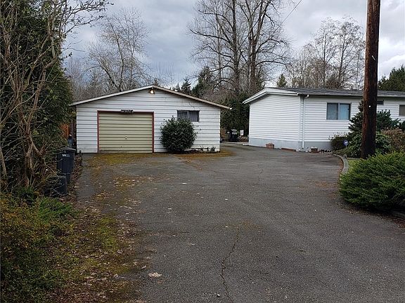 Beautiful shy 1/2 acre lot with 1974 two bedroom manufactured home, located in Northshore School District. Peaceful creek adjacent to home. You can see it from the dining room. Professional landscaping with underground irrigation. Specimen sized and varieties of trees and shrubs. Raised garden beds for vegetables. Blueberries, raspberries, Italian prune, pear and rhubarb. Huge shop area and storage rooms along with two very nice out buildings. One 8x8 that is insulated. One 10x8 with a porch. Home has a large kitchen, formal dining and a cozy propane/fireplace in the living room. Main bedroom and second bedroom were combined to make a great large master bedroom. Close to shopping, restaurants, bus line and I-405.