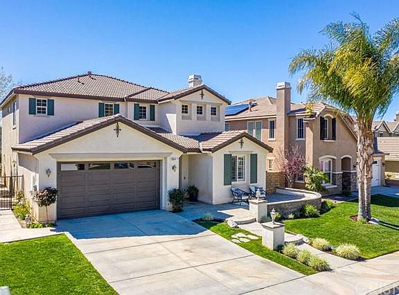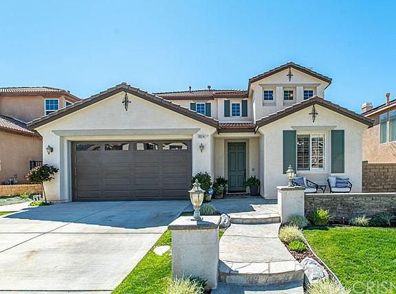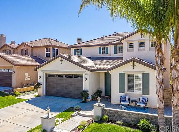 Saugus' Plum Canyon is one of the hottest neighborhoods in Santa Clarita and this new 4 bedroom plus loft home has it all. Sitting up high on the hill with no rear neighbors the VIEWS literally go across the entire valley! Private, pool-sized yard with covered patio too! Awesome floorplan with bedroom and private full bath downstairs. The kitchen/family room is gigantic with current colors and finishes - wood floors, white cabinets, granite counters, island and backsplash. Stainless steel appliance package too. Upstairs is 3 more good-sized bedrooms and spacious loft. The master features a great deck to enjoy the amazing view and the walk-in closet is huge. Nice shutters and blinds and everything is light and bright. 3-car garage with epoxy floors and best of all NO MELLO ROOS taxes and a reasonable HOA. Walk to award winning schools, parks and the new Skyline dining/shopping center. Great home!