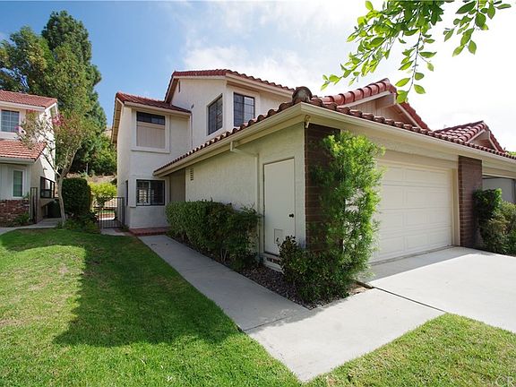 This lovely Porter Ranch home is located in a beautifully maintained 24 hour guard gated community. The two story attached home has a spacious open floor plan with a light and bright interior. It offers wood-like flooring, freshly painted walls, smooth ceilings with recess lighting, surround speaker system, and ceiling fans in all bedrooms. The kitchen features stainless steel appliances, a provided fridge, breakfast area, and it opens to a formal dining room. The family room has a cozy fireplace and a patio door opening to the beautiful backyard. The landscaped yard has a patio area and grassy area- a perfect place to relax and entertain! The master bedroom as an attached private bathroom with 2 sinks and marble sunken tub shower. One bedroom upstairs offers a built-in desk and shelving. There is a powder room downstairs. This home has central heat and air. There is an inside laundry area and an attached 2 car garage with direct access. The community offers community pools, spa, tennis courts, basketball court, and play grounds. There are fantastic hiking and biking trails nearby. Gardener service is provided. This is a non-smoking and no pet property.