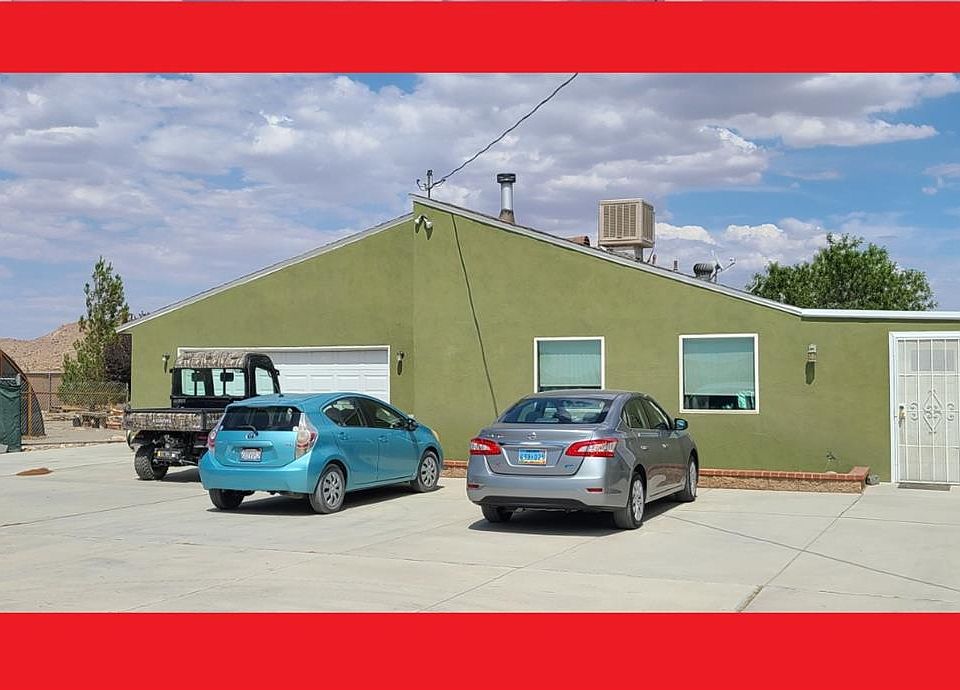 Desert Country Living 2bd 2ba house with 2+ useable acres with privacy fence, grow house, Good Well, outside sheds, covered patio, electric gate! All rooms have ceiling fans, AC and evaporator cooler. There is block wall yard with grass to keep those special pets close. Lots of room in your private compound. Buyer to verify all information and permits.