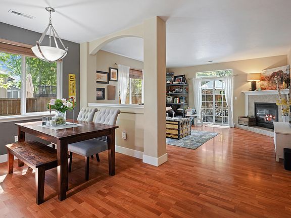 Darling single level home in River Rim! The open floor plan features a kitchen with a breakfast bar, dining area, and spacious living room with gas fireplace and wood laminate flooring. Three bedrooms and two full baths, including the master suite with dual sinks in the master bathroom. Recent updates include new exterior doors, updated baseboards inside, updated tile flooring in both baths & the laundry room, AND a new roof! Situated on a 0.14 acre lot, with a covered front porch to enjoy the peaceful Central Oregon evenings. Beautifully landscaped and surrounded by mature trees! The backyard boasts a large patio area, storage shed, and dog run, plus room for a garden. Just steps away from Wildflower Park and easy access to river trails. Excellent location close to schools, restaurants, shopping, and more!