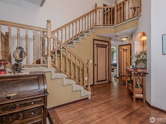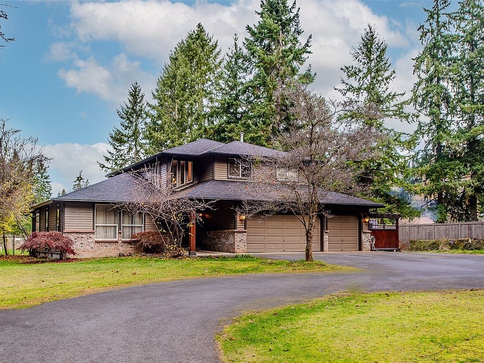 Don't miss the opportunity to own this amazing home in sought after Waldheim Acres, a perfect blend of rural/country living with neighborhood feel, all just minutes from up and coming Ten Trails in Black Diamond. Quintessential PNW architecture with estate feel of paved circular driveway. Inside boasts soaring ceilings, seamless flow between formal living, dining room & kitchen. Adjacent kitchen is a cozy family room complete with real wood burning stove for those winter days. Huge deck with decorative trellis & wood slab bar perfectly compliment the sprawling yard with bon fire pit. Home situated a on massive, perfectly flat, useable shy acre with loads of possibilities for the huge space: hobby farm, shop, ADU, leave it wide open or?!