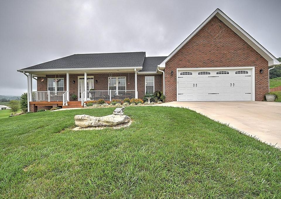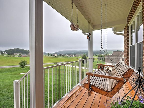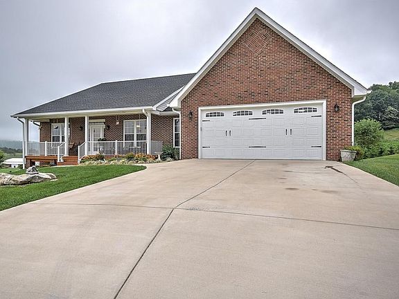 This charming brick home has the most beautiful views of the mountains. Just picture yourself sitting on the front porch looking at our beautiful mountains. There is 9ft ceilings throughout the house and there is 36" wide handicap doorways. Living room is very spacious, kitchen has granite counter tops, tile backsplash, double oven and lots of lighting. There is a small water heater under the kitchen sink for instant hot water. More mountain views to look at from the sunroom. Large master bedroom and the master shower is at floor level. Laundry room is on main level. The garage is approx. (23'3 x 25'7 ) on the main level and is very spacious. Basement has a workshop and one car garage. Walk out the basement onto the patio and the fenced in back yard. There is no HOA, streets are not County or State maintained, and there is no road maintenance agreement if place.