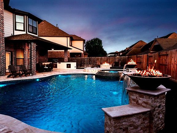 Sparkling pool and spaGas fireplaceGas stoveOutdoor kitchenLarge covered patioFormal dining roomStainless steel appliances