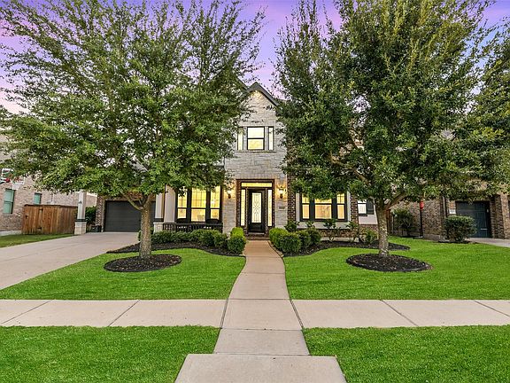 This stunning 4-bedroom, 3.5 bath Newmark Home built in 2014 offers impressive features inside and out! Enjoy brand-new wood-look porcelain tile flooring throughout the main level, a grand 2-story living room with a gas fireplace and wooden shutters and a formal dining room with tray ceilings. The spacious kitchen includes a butler’s pantry with wine fridge, stainless steel appliances, gas stove and large breakfast area. The formal living room can also serve as an office or playroom. The primary suite has a sitting area with bay windows, jetted tub, shower and two large closets. Upstairs has a huge game room with wet bar and fridge, two spacious bedrooms with Jack-and-Jill bath and one with a private bath. Step outside to a sparkling pool and spa with water feature and fire bowls, fire pit, and a large covered patio with outdoor kitchen, grill, cooler, and sink. Exterior recently painted. Enjoy all of Towne Lake's amenities: water park, lazy river and recreational lake.