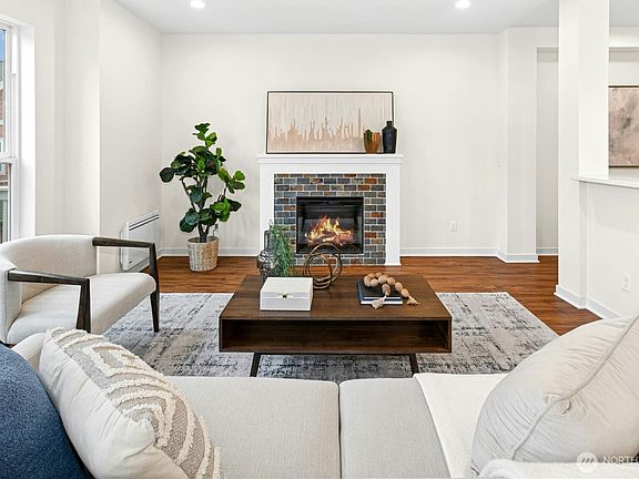 Welcome to Crofton Springs in the desirable Issaquah Highlands! This beautifully refreshed townhome offers open-concept main floor living perfect for entertaining and large gatherings. Enjoy modern updates throughout, including new carpet and paint, quartz countertops, stylish lighting, stainless steel appliances, engineered hardwood floors, and a cozy electric fireplace. Upstairs features a primary suite with a large walk-in closet and private bath, a second bedroom and full bath, plus a versatile bonus area ideal for a home office or reading nook. Take in mountain views and appreciate the oversized two-car garage. Close to Grand Ridge Elementary, Zeek’s Pizza, trails, shopping, dining, and entertainment.