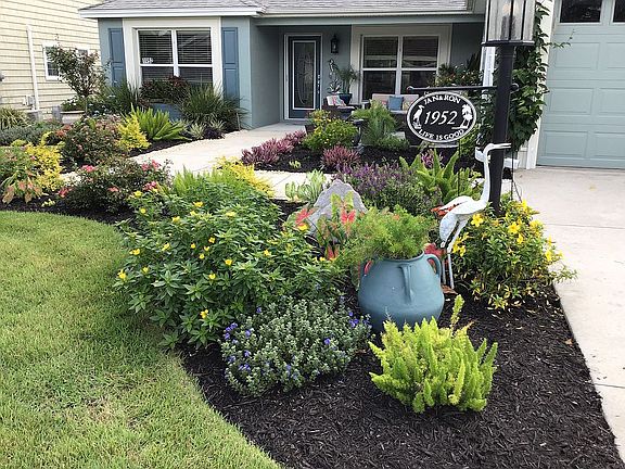 This poured concrete and stucco 3 bedroom, 2 bathroom designer home is in a prime location just south of Lake Sumter Landing Market Square. A gorgeous curb appeal greets you upon arrival featuring Florida friendly landscaping, a front porch, garage door with window inserts, and front door with glass inset. Upon entering your will notice the decadent wood laminate flooring, which are located throughout the main living areas. The kitchen features Silk cabinetry, tile backsplash, recessed lighting, pantry, and French Door style refrigerator. Volume ceilings make the home feel very open and airy. You will love spending time on your Florida Room, which leads to an screened lanai and patio with a railing. The offset floor plan is great for additional privacy in the rear. Volume ceilings make the home feel very open and airy. The split floor plan is great if you have guests as a pocket door separates the guest wing. Other important features include knockdown ceilings, double pane windows, architectural shingled roof, inside laundry, epoxy painted garage floor, dual vanities and closets in the master, and more. This is your chance to own a little slice of paradise!