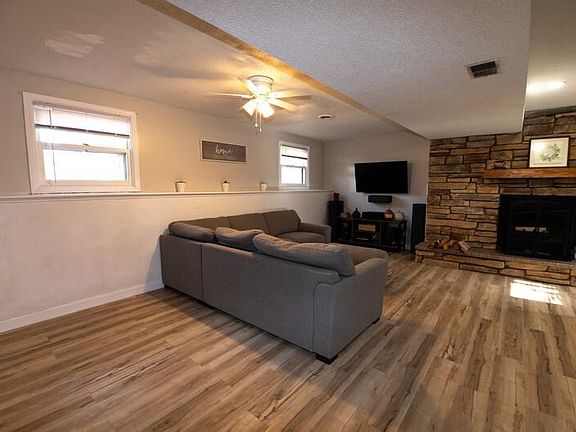 This generous 5 bedroom, 2 full bath residence features a great deck overlooking the yard adorned with mature trees. The central air system was recently updated in 2023. You will find a side concrete drive leading to a 2.5 car garage. The lower family room is impressive, featuring a natural stone fireplace, a wet bar, and a cozy reading nook. There is also a full bath on the lower level equipped with a raised vanity and shower stall. The main floor living room is large and includes a picture window along with durable vinyl plank flooring. The kitchen is bright with spacious dinette area that has a newer patio door installed in 2020. The main bathroom boasts a new vanity and shower. The master bedroom includes dual closets for ample storage. Convenient Location near downtown and schools!